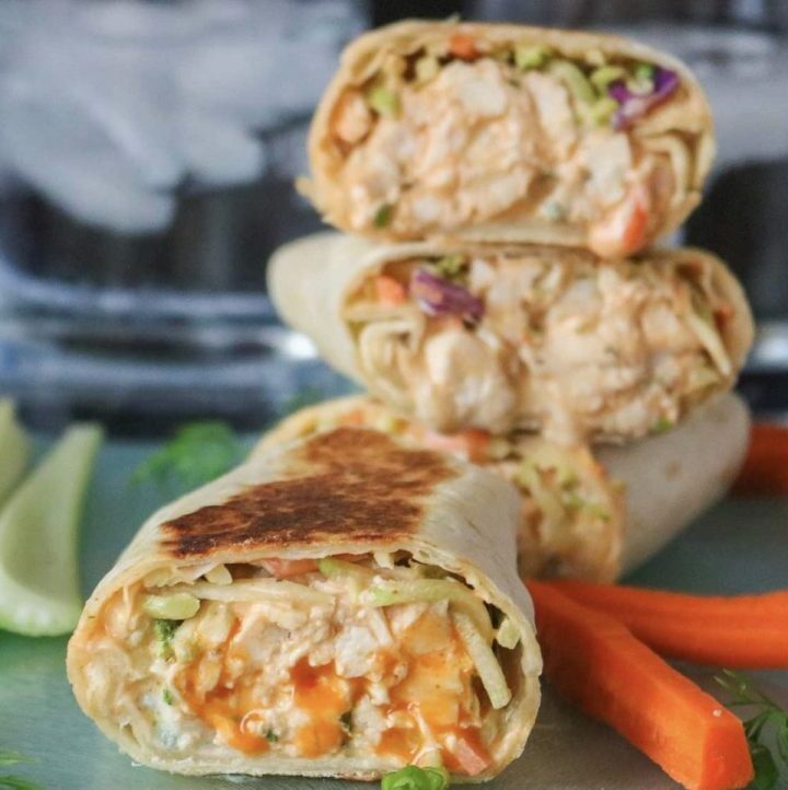 Serve warm with extra buffalo sauce, jalapeños peppers, skinny ranch, and/ or shredded lettuce.