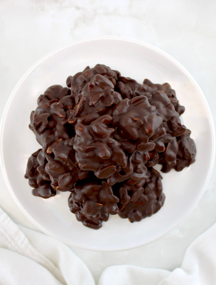These chocolate peanut clusters are the perfect mix of sweet and salty, with a crunchy texture and rich chocolate flavor in every bite.