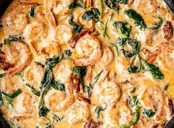 This creamy Tuscan shrimp recipe is one of those dinners that makes it seem like you tried very hard, but the minimal time and effort involved makes it perfect for weeknights! It’s super easy, quick, and really, really tasty and impressive.